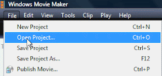 1. Buka Movie Maker dan buka project yang telah anda buat sebelumnya.