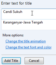 Masih mau belajar Cara membuat video foto dengan Movie Maker? Sebelumnya saya sudah memberikan tutorial Cara memasang effects pada Movie Maker dan Cara memasang transitions pada Movie Maker. Sekarang kita melanjutkan belajar bagaimana memberi judul pada sebuah video photo di Movie Maker yang kita buat. Judul yang kita buat ini nantinya akan tampil pertama kali waktu video photo ini kita mainkan.