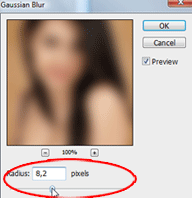 7. Pada jendela dialog, atur Radius dengan cara menarik slider atau langsung anda ketiikkan angka pada kolom yang disediakan. Misal kita atur 8.2 pixel, akhiri dengan tekan OK.