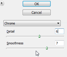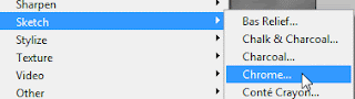 4. Klik menu Filter>Render>Clouds.5. Klik Filter>Sketch>Chrome.