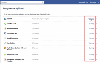 5. Anda akan dibawa ke halaman pengaturan aplikasi. Semua aplikasi disediakan tombol pengaturannya. Pilih aplikasi yang akan anda atur. Di sini saya contohkan aplikasi yang paling atas. Klik tulisan Sunting.