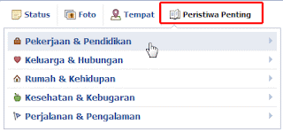 c. Peristiwa Penting: Anda dapat menyertakan peristiwa yang anda inginkan sebelum anda mengirimkannya.6. Setelah anda mengirimkannya, apabila ada hal kurang pas anda dapat menyunting atau menghapusnya dengan menklik icon pensil. Sedangkan icon bintang untuk mengubah ukuran kolom status anda menjadi lebar. Kedua icon tersebut hanya akan nampak jika anda menyorotkan mouse anda ke pojok kanan atas area status.